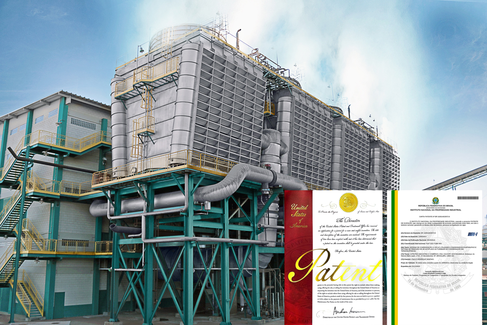 Sistema de Condensação a Vácuo, utilizando condensadores evaporativos acoplados às turbinas de condensação, recebeu patente no Brasil e nos Estados Unidos.