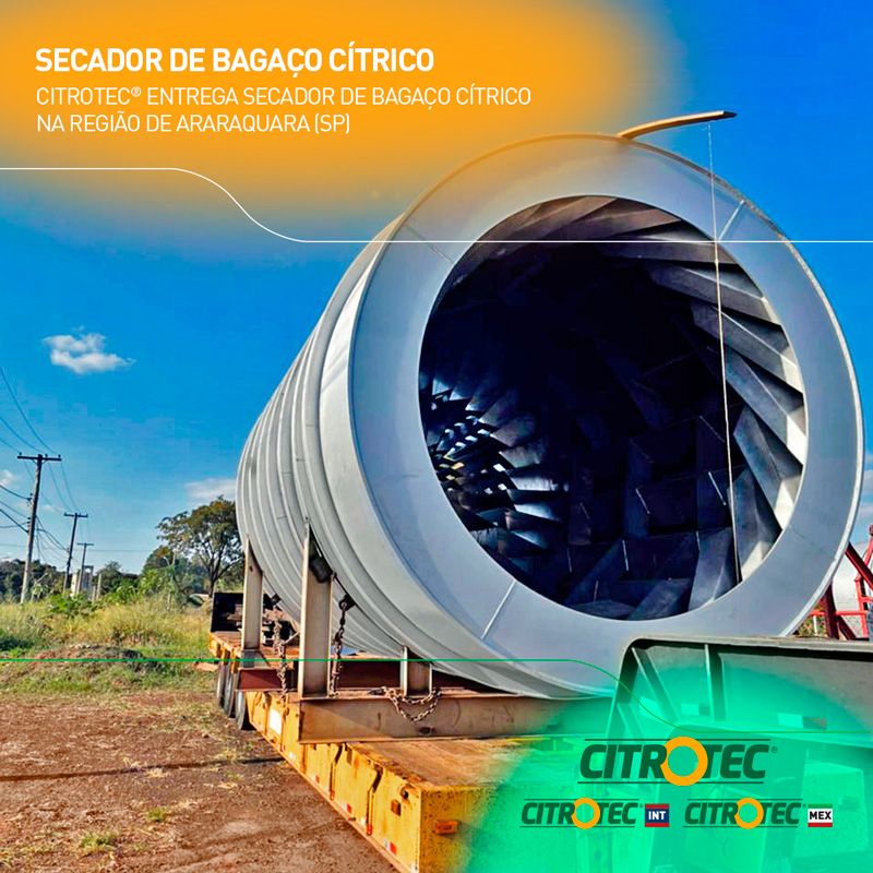 Empresa entregou um novo Secador de Bagaço Cítrico, com capacidade de 60.000 l/h, na região de Araraquara (SP). “A partir da consolidação do sucesso dos equipamentos Citrotec® para secagem de bagaço, nós temos fabricado diversos secadores para importantes indústrias de cítricos do mundo”, conta o diretor técnico da Citrotec®, Paulo Henrique Sampaio.