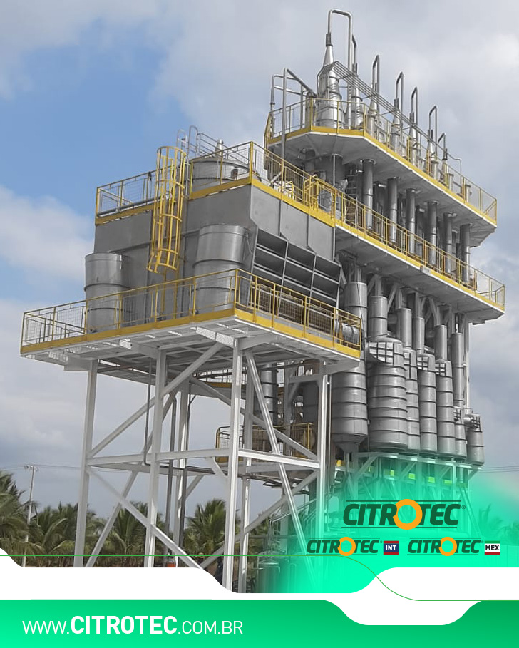 O Evaporador montado, foi 100% projetado e fabricado pela Citrotec® e exportado para o Mexico. O equipamento foi instalado na cidade de Tecoman e ira iniciara suas atividades no mês de maio desse ano. O Evaporador ENET® tem capacidade de evaporação de 45.000 kg/h, com 7 efeitos e 7 etapas, consta com equipamentos opcionais como Condensador Evaporativo e Recuperado de Aromas para a retira do d´limonene, produto de alto valor agregado.