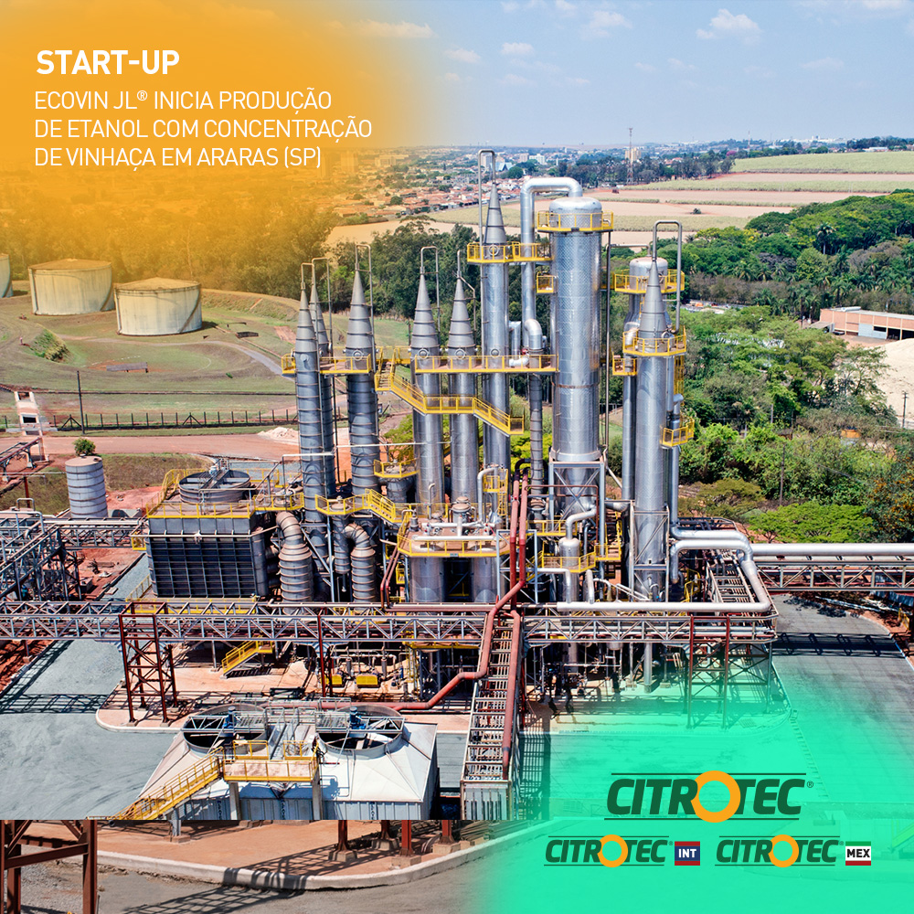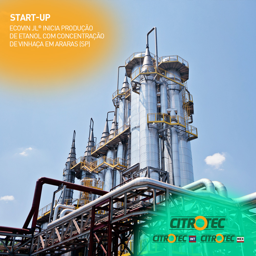 A Citrotec® fez o start-up de mais um importante equipamento para a indústria nacional e mundial de açúcar e álcool: o Ecovin JL®. A destilaria de etanol em conjunto com o Evaporador para Concentração de Vinhaça começou a produção em Araras (SP), neste mês.